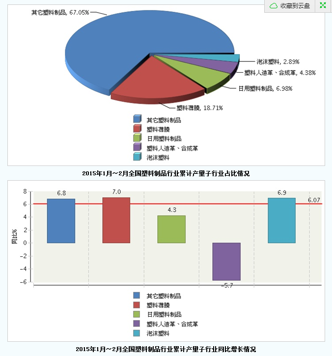 2015年1月~2月塑料制品产量同比增长6.07%