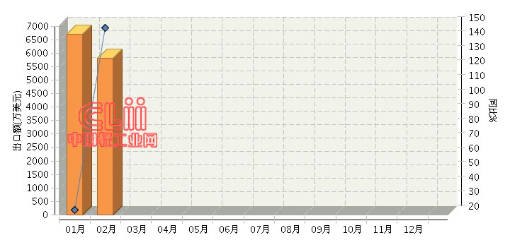 2015年1~2月,全国白炽灯泡行业累计完成出口额12,508.79万美元,同比增长61.03%。其中: 2月份完成出口额5809.57万美元,同比增长149.07%。
