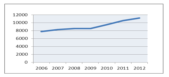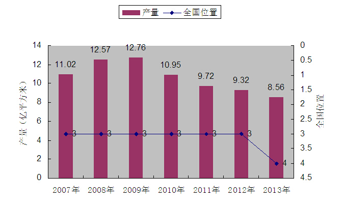 图1: “十一五”以来全省陶瓷砖产量及全国位置