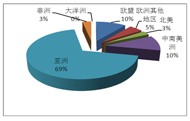 图3 世界各大区陶瓷砖产量比例