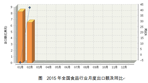 2015年1~2月全国食品行业累计出口额同比增长12.21%