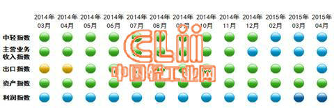 图1-2 2014.3—2015.4陶瓷行业景气指数预警信号灯变化态势
