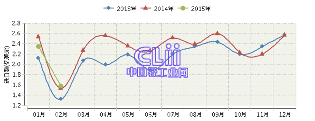 根据海关总署发布数据:2015年1~2月,全国家具行业累计完成进口额3.93亿美元,同比下降3.69%。其中:2月份家具进口额同比增长2.52%。