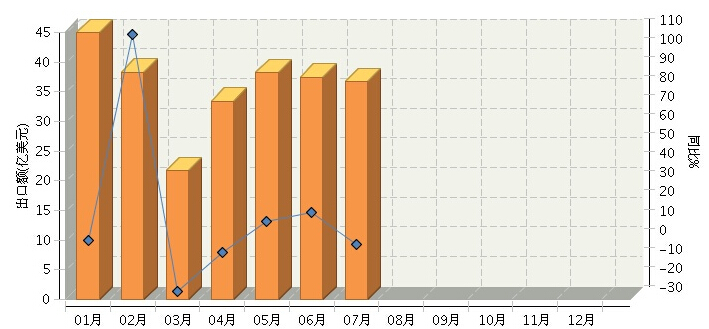 2015年7月,全国五金行业完成出口额36.72亿美元,同比增长-1.44%,出口额及增速均出现环比下降,其中,行业出口额增速环比下降16.93个百分点,并转为了负增长。