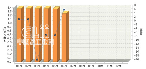 2015 年1~6月,江苏白炽灯泡累计完成产量8.10亿只,同比增长-4.35%。其中: 6月份完成产量1.25万万只,同比增长6.91%。