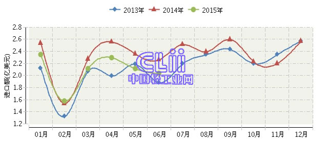 全国家具行业连续三年月度进口额对比