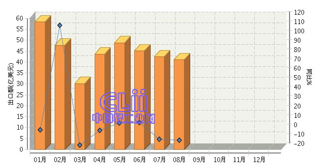 2015年1~8月我国家具行业出口累计同比增长5.46%