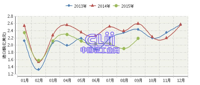 全国家具行业连续三年月度进口额对比