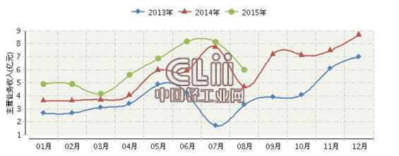 2015年1~8月湖南照明累计主营业务收入同比增长23.45%