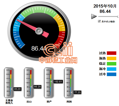 2015年10月中轻陶瓷景气指数86.44,较上月回落0.42,位于渐冷区间,参见图1-1。