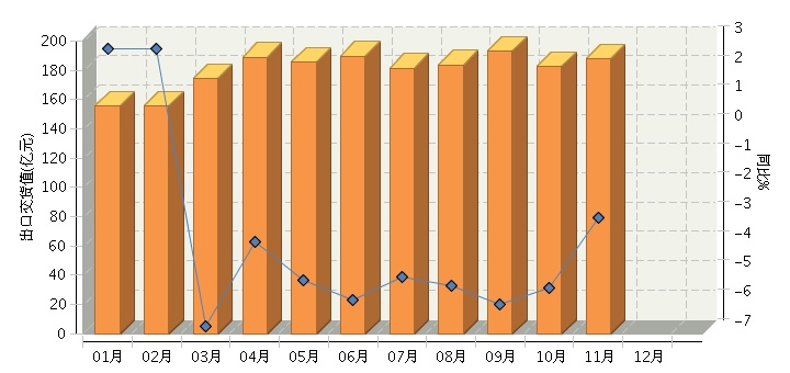 1月~11月,全国塑料行业累计完成出口交货值1,989.31亿元,同比增长-3.54%。