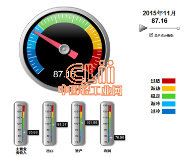 2015年11月中轻陶瓷景气指数87.16,较上月回升0.72,位于渐冷区间,参见图1-1。