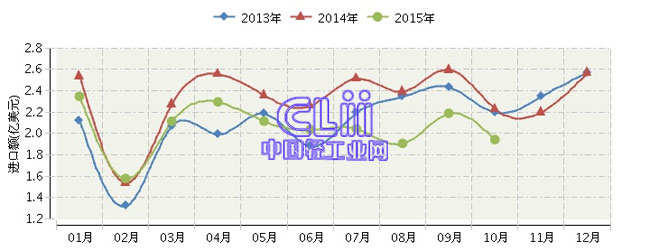 根据海关总署发布数据:2015年1~10月,全国家具行业累计完成进口额20.57亿美元,同比下降11.61%。其中:10月份家具进口额同比下降12.83%。