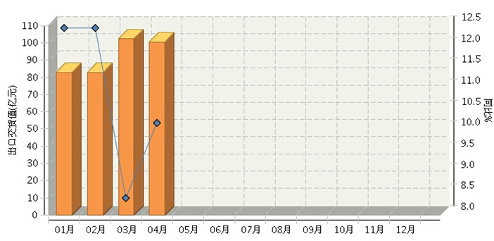 根据国家统计局公布数据,201614月,全国食品行业累计完成出口交货值同比增长10.62%。其中:1月份完成出口交货值同比增长12.45%2月份完成出口交货值同比增长12.45%3月份完成出口交货值同比增长8.39%4月份完成出口交货值同比增长10.18%。月度数据走势及同比增长情况如下图所示。