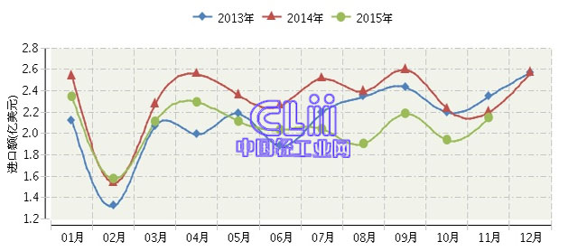 全国家具行业连续三年月度进口额对比