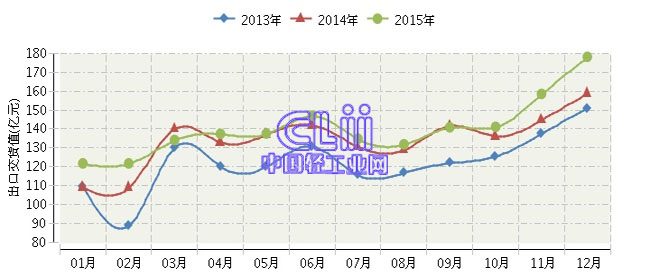 全国家具行业连续三年月度出口交货值对比