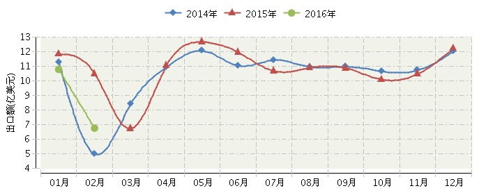 2016年1-2月我国文教办公用品出口同比下降21.47%