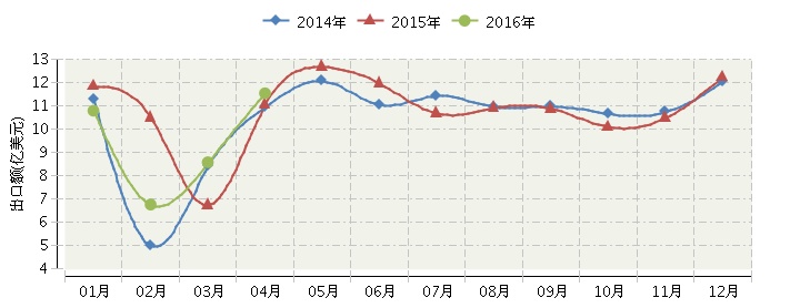 2016年1-4月我国文教办公用品出口同比下降6.20%