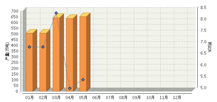 中国轻工业经济运行及预测预警系统监测显示:2016年1月~5月,全国塑料制品行业规模以上企业累计完成产量2,936.67万吨,同比增长6.48%。其中:5月份完成产量651.34万吨,同比增长5.5%。