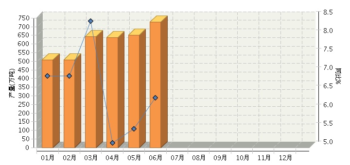 中国轻工业经济运行及预测预警系统监测显示:2016年上半年,全国塑料制品行业规模以上企业累计完成产量3,688.73万吨,同比增长5.78%。其中:6月份完成产量727.09万吨,同比增长6.35%。