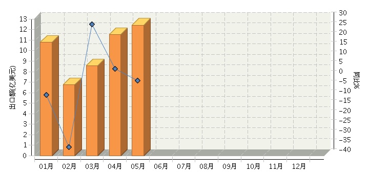 本数据来源于海关总署月度统计数据,更多数据查询,请参见《中国文体