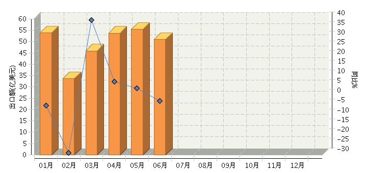 中国轻工业经济运行及预测预警系统监测显示:2016年1月~6月,全国塑料制品行业累计完成出口额286.51亿美元,同比下降1.80%。其中:6月份完成出口额50.99亿美元,同比下降2.15%。