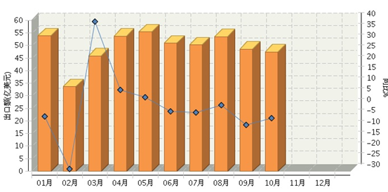 中国轻工业经济运行及预测预警系统监测显示:2016年1月~10月,全国塑料制品行业累计完成出口额474.74亿美元,同比下降5.05%。其中:10月份完成出口额47.43亿美元,同比下降5.46%