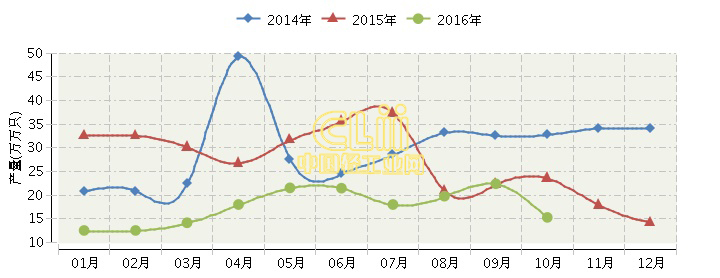 2016年1月~10月,福建发光二极管(LED)累计完成产量175.61亿只,同比增长-41.37%。其中:10月份完成产量15.28亿只,同比增长-36.66%。