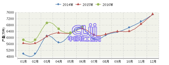 2016年全国家具行业月度产量及同比