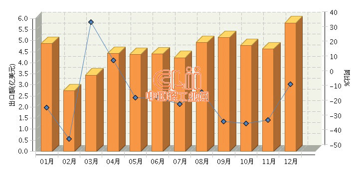 据海关数据显示,2016年1~12月,全国陶瓷制餐具累计出口50.38亿美元,同比下降22.38%。其中:12月份出口额5.8亿美元,为全年单月最高出口额,同比依然下降4.68%。