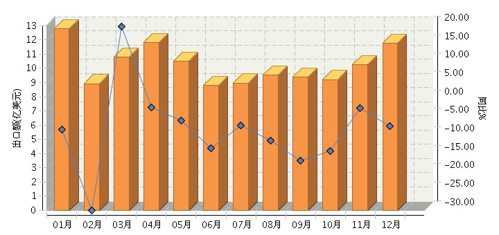 本数据来源于海关总署月度统计数据,更多数据查询,请参见《中国文体