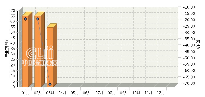 2017年1月~3月,上海荧光灯行业累计完成产量185.25万只,同比增长-43.44%。其中:3月份产量54.59万只,同比增长-68.09%。