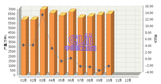 根据国家统计局公布数据:2016年1~10月,全国家具行业累计完成产量64032.99万件,同比增长1.75%。其中:10月份家具产量同比下降1.24%。