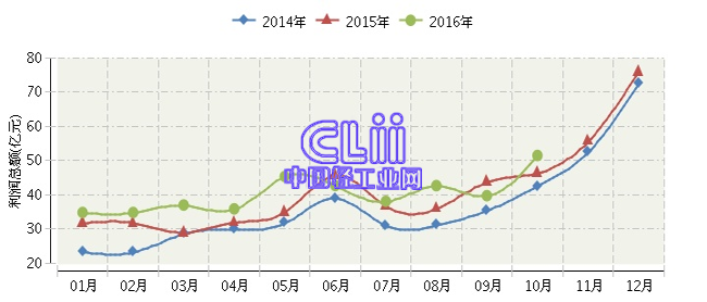 全国家具行业连续三年月度利润总额对比