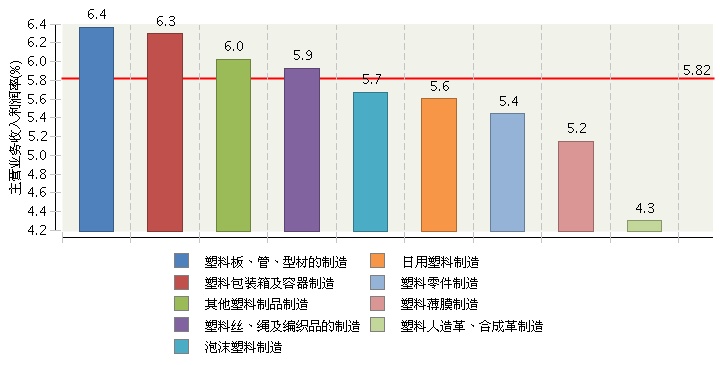 1-7月塑料制品行业主营业务收入利润率5.82%