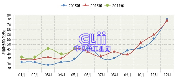 全国家具行业连续三年月度利润总额对比