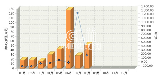 2017年1~8月,重庆照明器具制造行业累计完成出口交货值331.80万元,同比增长50.54%。其中:8月份完成出口交货值50.8万元,同比增长227.74%。
