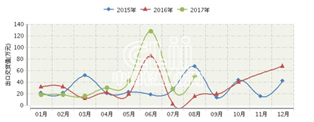 2017年重庆照明器具制造行业连续三年月度出口交货值对比