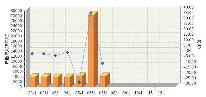 根据国家统计局公布数据,2017年1~7月全国碱性蓄电池行业累计完成产量同比增长13.11%。其中:7月份完成产量同比增长-8.17%。2017年全国碱性蓄电池行业月度产量及同比如下图所示。