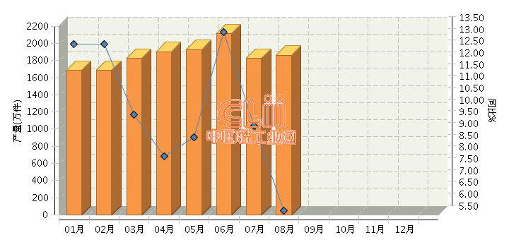 据国家统计局数据显示,2017年1~8月,全国规模以上企业累计生产卫生陶瓷制品同比增长9.78%。其中:8月份完成产量1862.4万件,同比增长5.68%,当月增速为年内最低。