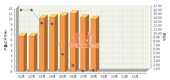 2017年1~8月全国陶瓷砖产量同比增长6.43%