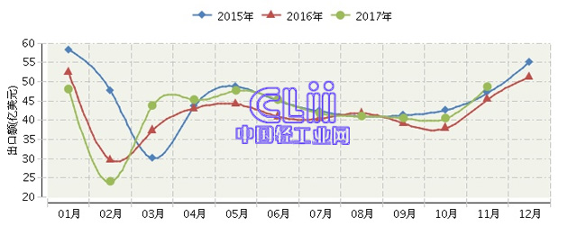 2017年1~11月我国家具行业出口累计同比增长5.29%