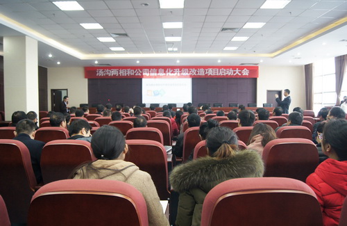 2016年12月10日上午,为了加快公司信息化建设,促进各项措施的有效落实,汤沟两相和酒业公司在汤沟酒业大厦21楼召开信息化升级改造项目启动大会,公司各部门主要领导及办公行政人员参与会议,会议由总经理助理成杰主持。