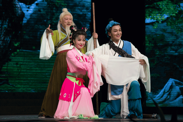 “树上的鸟儿成双对 ,绿水青山带笑颜 ,从今再不受那奴役苦 ,夫妻双双把家还……”当经典的黄梅旋律唱响舞台时,台下爆出热烈的掌声。让现场观众大呼过瘾的是,该剧进行了大胆创新,将现代声光电科技运用到舞台背景中,根据故事情节的推进不断变幻出相应的场景和人物,带来了更为新鲜的视觉冲击。LED的3D背景墙、唯美的艺术唱腔、适时的灯光效果,营造出一种全新的演出效果。全剧通过“鹊桥”“路遇”“织绢”“满工”“分别”等六场剧情演出,细腻地刻画了七仙女与董永的爱情传奇。演员们用温婉甜美的唱腔、曼妙柔美的动作,将每一个角色都诠释得淋漓尽致。
