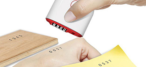 创意和简单,将卷尺和印章这两个功能整合在一起做加法,卷尺伸出的同时,会带动印章动作,将数字自动调整为当前伸出的长度,然后,将之往纸上、手上一盖就搞定。