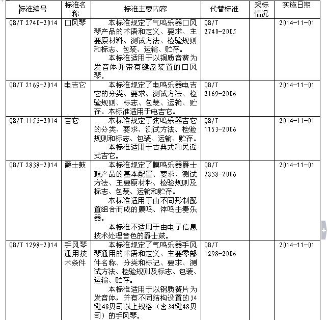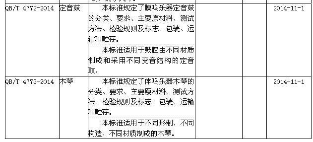 标准由中国轻工业出版社出版。其中涉及乐器行业5项,见下表。