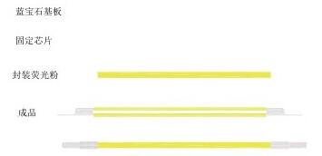 LED灯丝灯制造的关键技术在于LED灯丝的制作,其实这是一种新型的LED封装技术,将N颗小功率的LED芯片串联封装在基板上,用金线将它们串联,用荧光粉涂覆外裹。LED灯丝具有小电流高电压的特性,有效地降低了LED的发热和驱动器的成本,具有突出的优势。