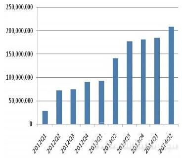 图3 2012~2014年上半年中国LED球泡灯季度出口额