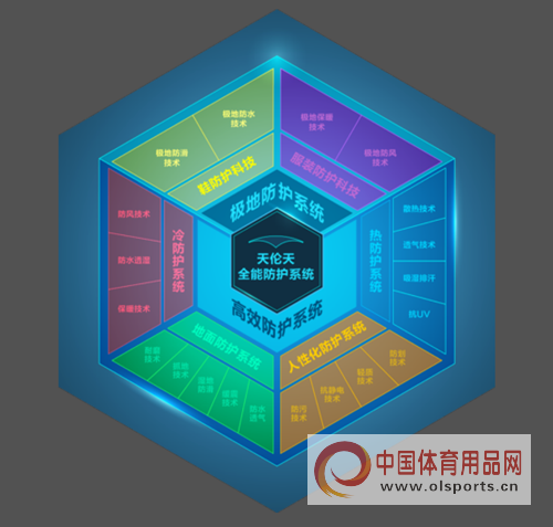 天伦天为打造完美的户外体验,不断追求精湛的户外技术,在十四年户外经验、极地实地检验中,创建了属于自己的产品科技系统——天伦天全能防护系统,包括了高效防护系统、极地防护系统。而高效防护系统又通过热防护系统、冷防护系统、地面防滑系统、人性化防护等具体科技来实现。