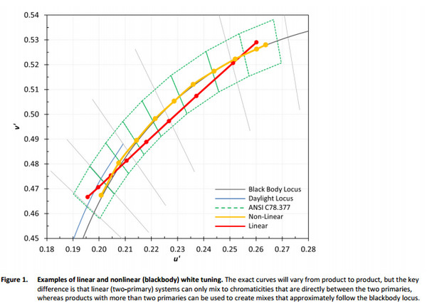 图例:线型灯具与非线型灯具的调光表现比较。(图片来源:美国能源署)